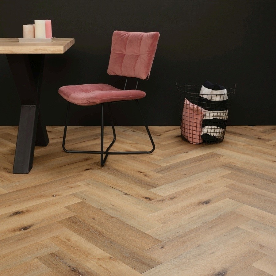 Visgraat verwijst naar het legpatroon waarbij de planken in een V-vorm tegen elkaar liggen, wat een luxe en tijdloze uitstraling geeft. Normale laminaat wordt recht gelegd. Visgraat is intensiever om te leggen en vraagt meer vakmanschap, maar levert een duidelijk mooier eindresultaat op. De materiaalprijs is ook iets hoger.
